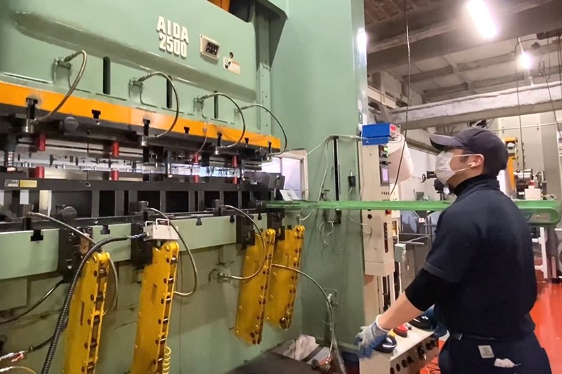 プレス機械を操作し、製品の生産を行います。プレス機械への金型取付けや材料掛け等の生産段取り、生産前/中/後の製品測定や設備管理なども行っています。入社後、まず配属されるのがこの部署です。若手社員も多く所属しています。